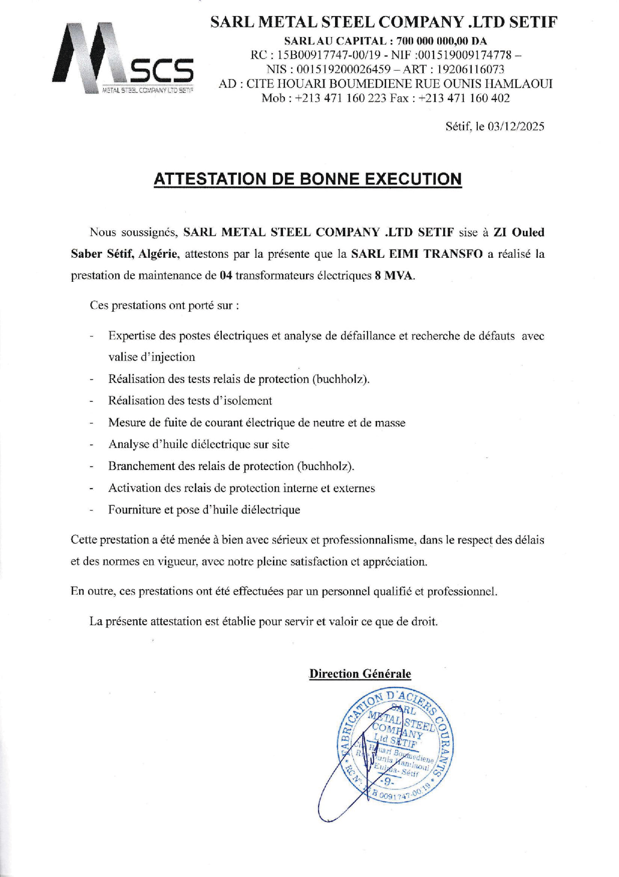ANALYSES D'HUILES, EXPERTISES ET MESURES ÉLECTRIQUES